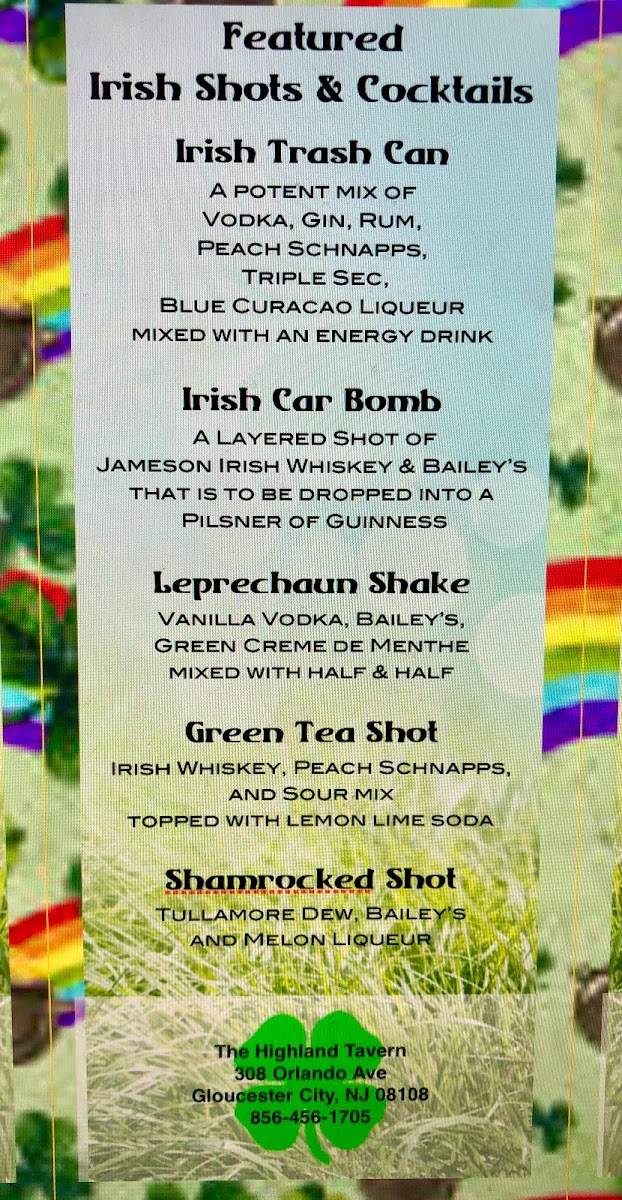 “ The Highland Tavern is “Gloucester City’s best kept secret.” Open til 2am 7days a week. Jukebox, billiards, enchanting bartenders, great bar food til late. A place where people meet. Your expectations will be met. ”